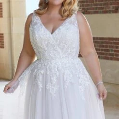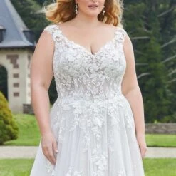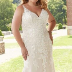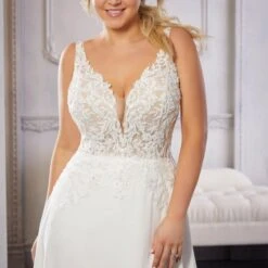 Mori Lee 3331C Caroline Plunging Neckline Plus Size Wedding Dress