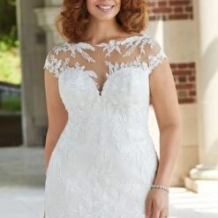 Mori Lee 3348 Ellery Illusion Neck Cap Sleeve Plus Size Bridal Dress