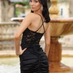 The Aria One Shoulder mini in Black is a stretch velvet fabric covered with sequins throughout; giving you an hourglass bodycon fit. This sparkly mini dress is perfect for your next special occasion; rule the night by pairing the Juliette with a cute clutch and strappy heels; perfect as a homecoming dress, semiformal dress or for a night on the town!