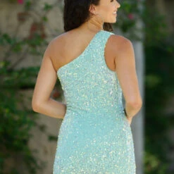 The Aria One Shoulder mini in Mint is a stretch velvet fabric covered with sequins throughout; giving you an hourglass bodycon fit. This sparkly mini dress is perfect for your next special occasion; rule the night by pairing the Juliette with a cute clutch and strappy heels; perfect as a homecoming dress, semiformal dress or for a night on the town!