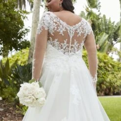 Christina Wu 29396 Sheer Sleeve Illusion Back Plus Size Wedding Dress