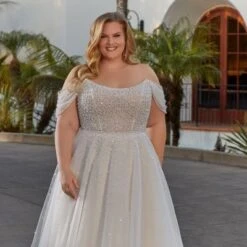 Christina Wu 29427 High Slit Beaded Neckline Plus Size Wedding Dress