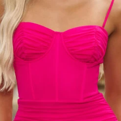Look your best in this mesh ruched bodycon mini corset dress. Complete with a charming sweetheart neckline, seamed bustier-style bodice with adjustable straps, stretchy sheer mesh fabric, ruching detailing, hidden zipper back, and body-fitting skirt hem, our classic mesh corset dress is perfect for your next party.