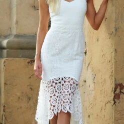 - We’ve fallen head over heels for this stunning midi dress, and we think you’ll do the same! Our Giselle dress is an ultra-flattering silhouette for all body types and the perfect bridal event or cocktail occasion style. The sweetheart neckline and embroidered cap sleeves are the stars of the show. It will hold your curves in all the right places with a handkerchief hem skirt that falls just below the knee.