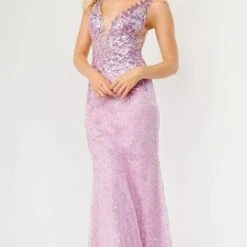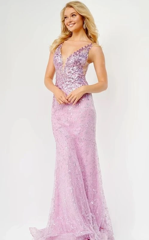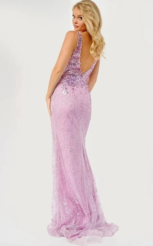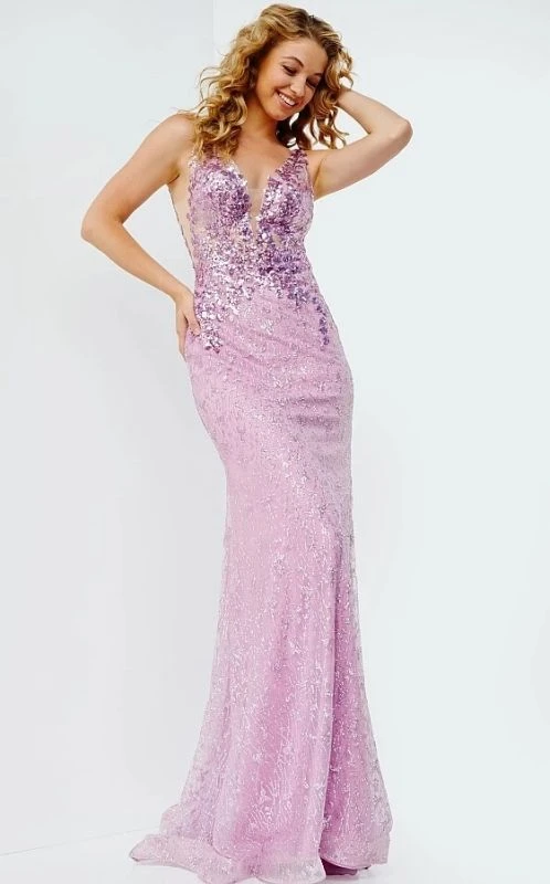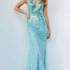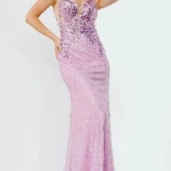 Jovani JVN08418 Plunging Neckline Glitter Dress