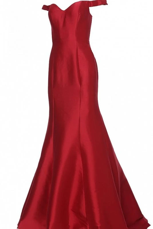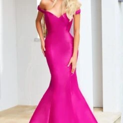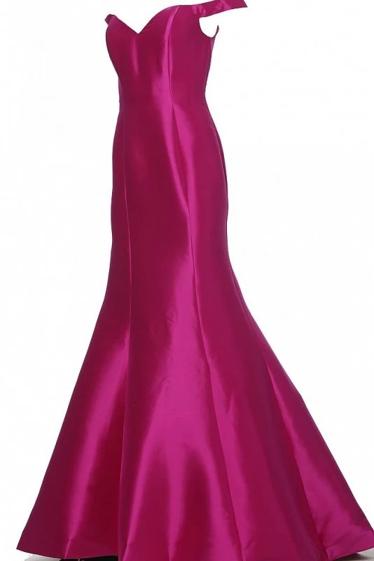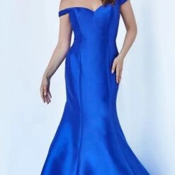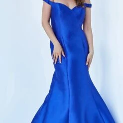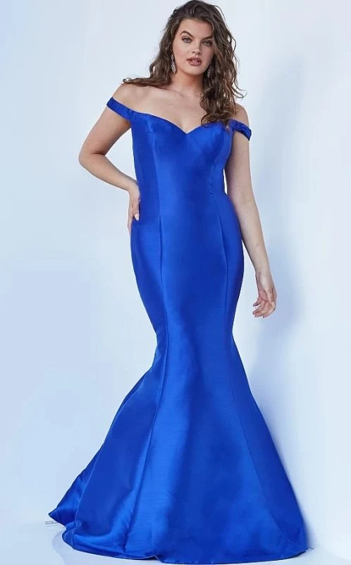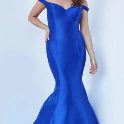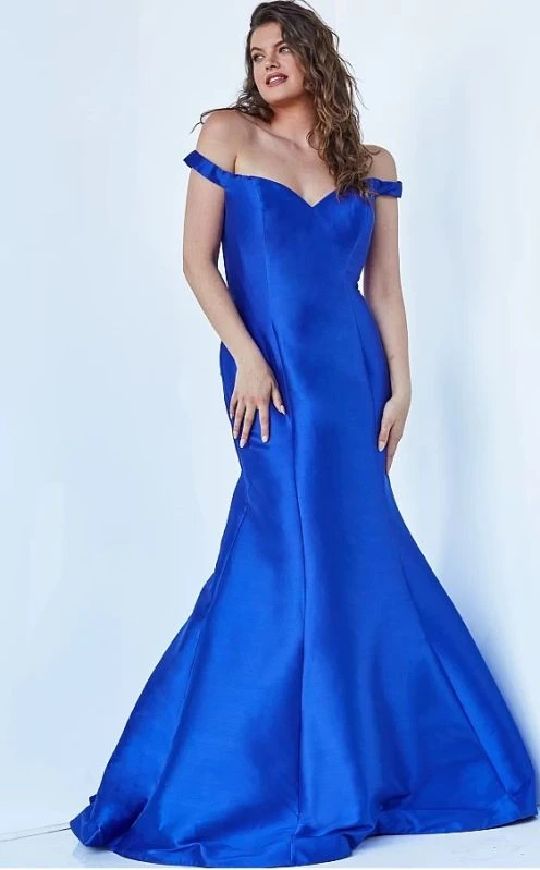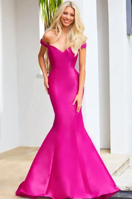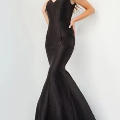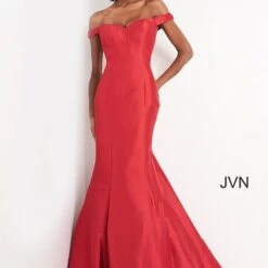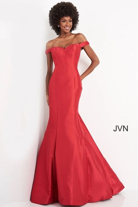 JVN by Jovani JVN3245 black prom gown features a fit and flare silhouette with an off-the-shoulder sweetheart neckline and princess seaming.
