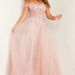 Jovani JVN37436 Sheer Corset Off The Shoulder Dress