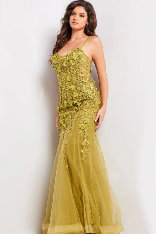 Jovani JVN38480 Sheer Corset Floral Appliques Dress