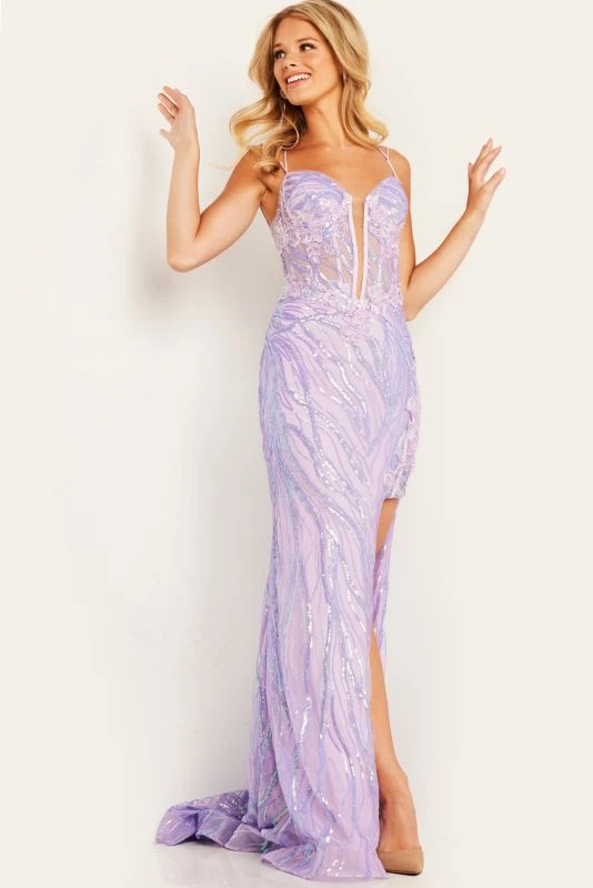 Jovani JVN38661 Illusion Corset Cutaway Slit Dress