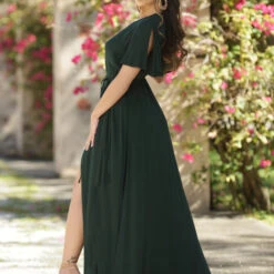 The Kari Maxi is the perfect dress to add to your wardrobe! This Wrap Dress is a lightweight maxi with a wrap and tie detail in the front which creates a beautiful V neckline .The split short sleeves and stunning leg slit offer a classic and flattering look for all. Perfect for your next wedding, special occasion, bridesmaids, summer event, engagement pictures, or night out!