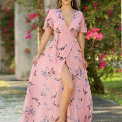 The Kari Maxi is the perfect dress to add to your wardrobe! This Wrap Dress is a lightweight maxi with a wrap and tie detail in the front which creates a beautiful V neckline .The split short sleeves and stunning leg slit offer a classic and flattering look for all. Perfect for your next wedding, special occasion, bridesmaids, summer event, engagement pictures, or night out!