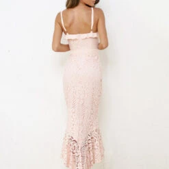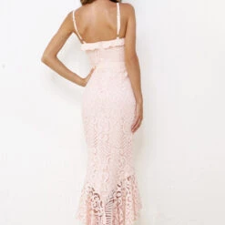 The Leanne Midi Dress in Blush is a stunning lace midi dress perfect for attending a wedding or a summer or fall special occasion!