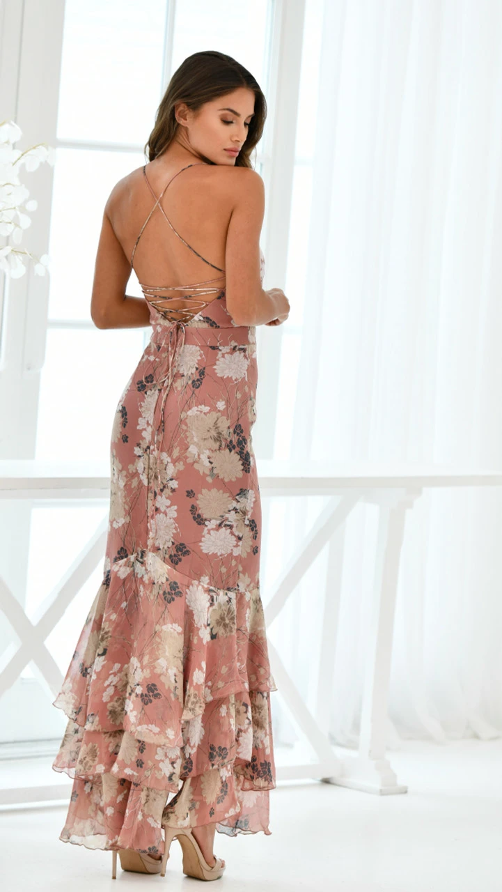 Marissa Floral Maxi Dress is figure hugging and a great alternative to traditional formal gowns.