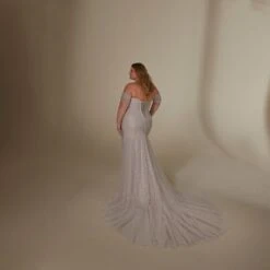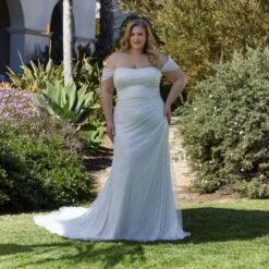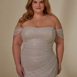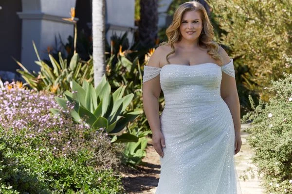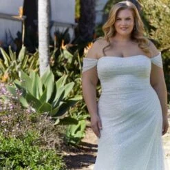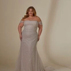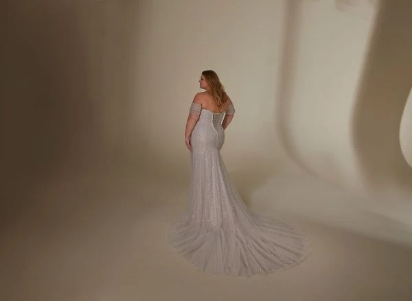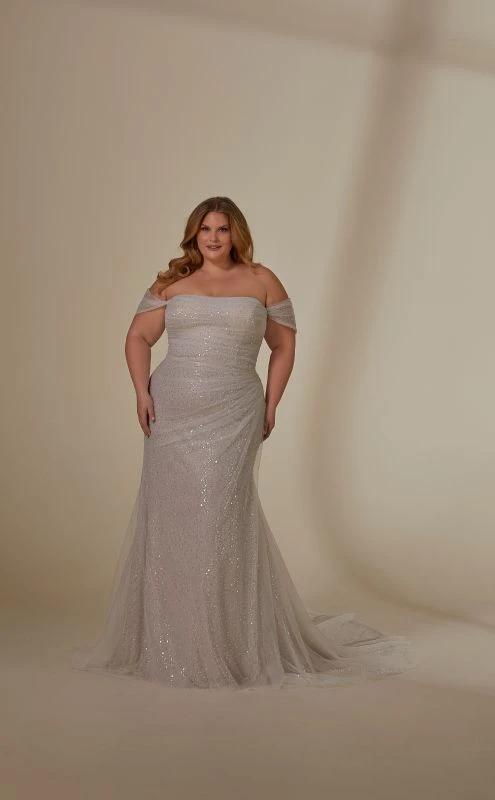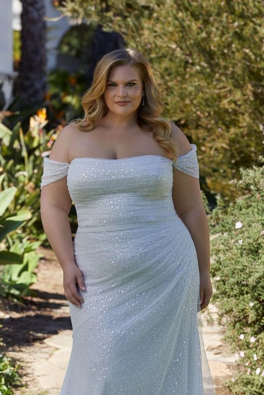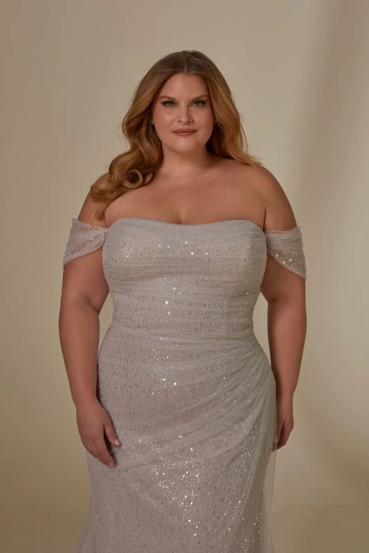Mori Lee 3393 Lyrica Off The Shoulder Sparkly Plus Size Wedding Dress