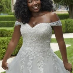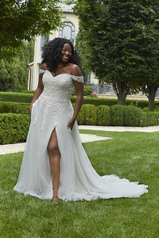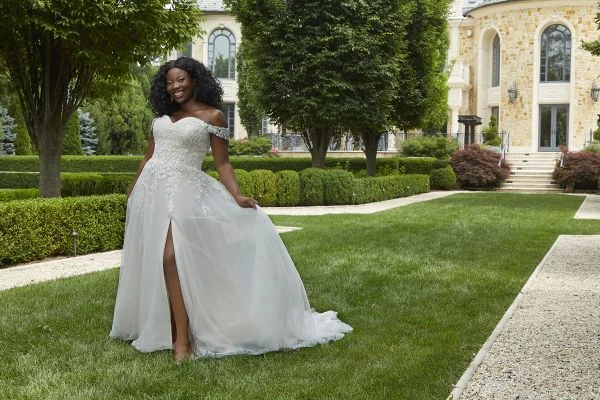 Mori Lee 3399 Luna Sheer Top Off The Shoulder Plus Size Bridal Dress