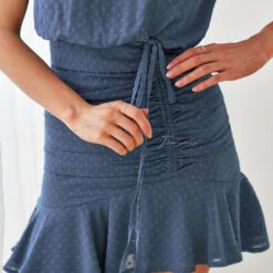 Our best selling Piper Dress has been recreated into the Pip Dress. It features a classy shirred high neckline which has stretch and is made from a light weight textured polka dot fabric. It has lining and two buttons at the back of the neck. It has a concealed side zipper.