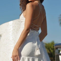 -White mini dress with lace up back