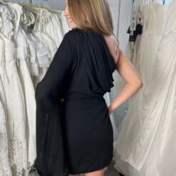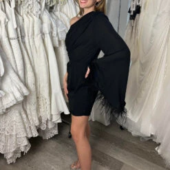 Be the best dressed at your next event in the Cleo One Sleeve Mini Dress! This mini displays ruching throughout the dress to display your beautiful curves! The sheer long sleeve adds to this chic and flirty look!