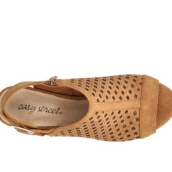 - The Belva by Easy Street sandal is stylish, comfortable, and fashion forward. Its chic cutout detailing, covered block heels, and fashionable buckle ornament will compliment your wardrobe choice. Designed with your comfort in mind, featuring an inside zipper for easy on and off and a padded insole for added comfort. This will be your favorite sandal!