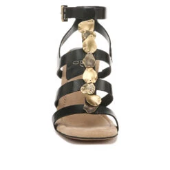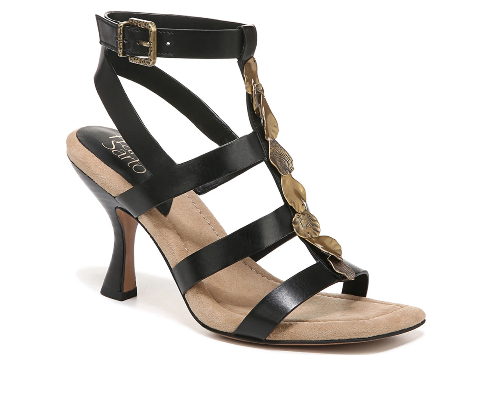 - Inspired by the outdoor markets and artisans of Ponte Vecchio, this beautiful heeled sandal with vintage-inspired gold jewelry defines Italian art and craft. Faux leather upper partially made from recycled materials. Eco-conscious linings with soft + sustainable comfort. Ankle strap with adjustable buckle closure. Open square toe. Vintage-inspired hammered gold metallic accents. 3.5 inch sculpted heel.