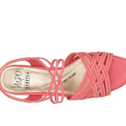 - The flattering basketweave-like straps of the Enya sandal are crafted from soft and slender stretch elastic and features a slip-on-and-go backstrap, cushioned memory foam insole, a striking scultptural kitten heel, and a trendy square open toe. The perfect go-to style for all your outfits, from dressed up denim to a flowing midi dress. This sandal exudes timeless elegance without sacrificing comfort!