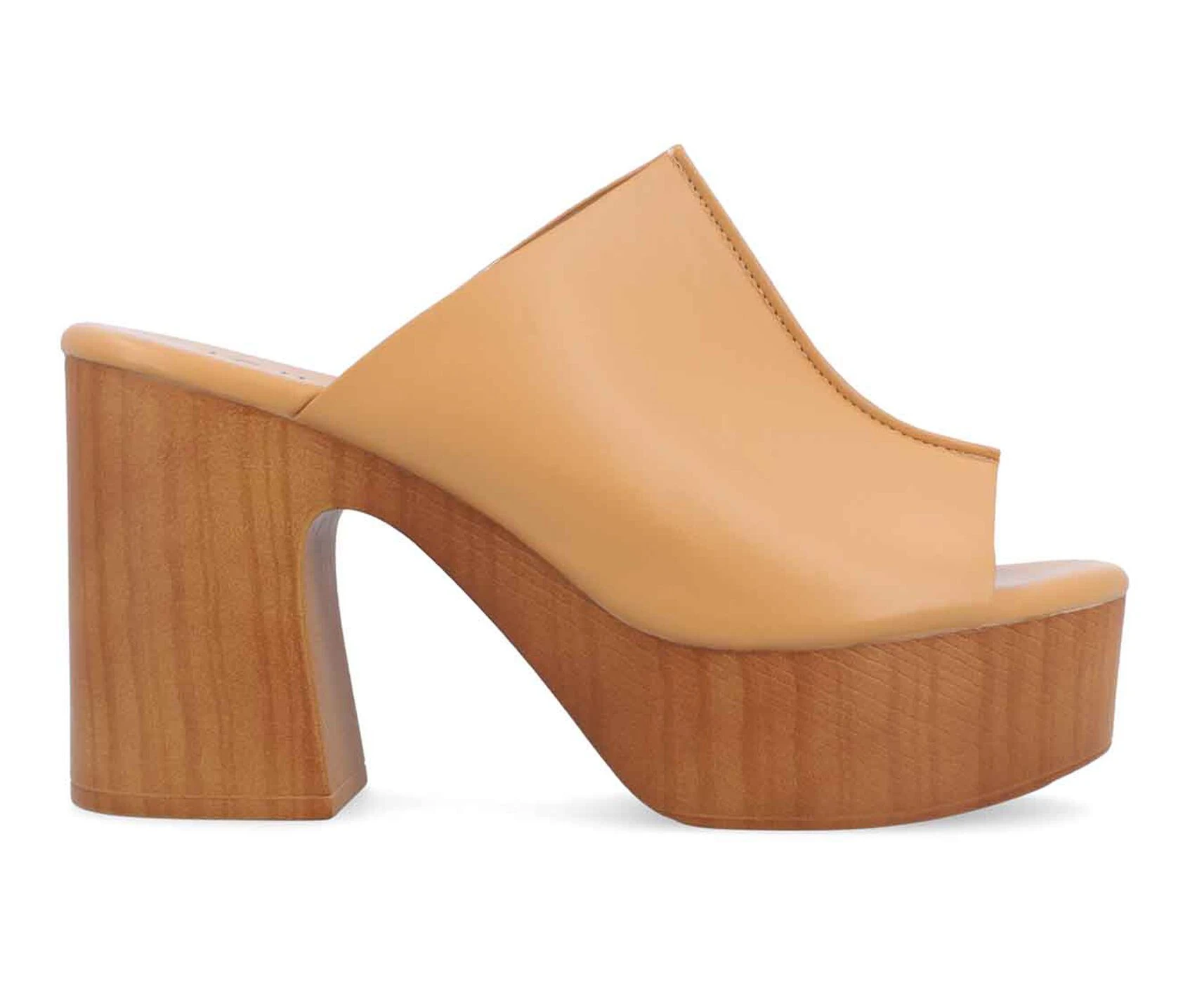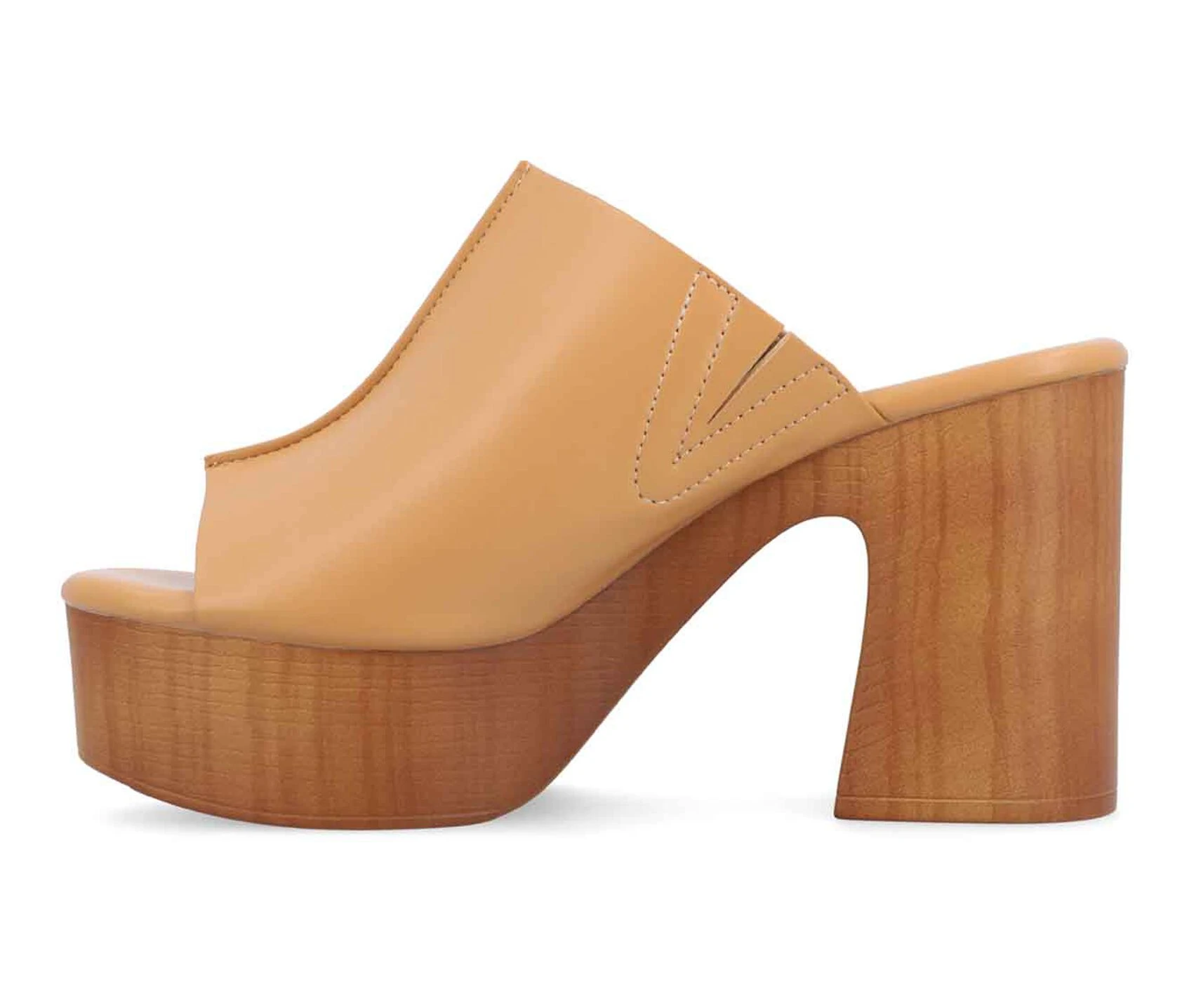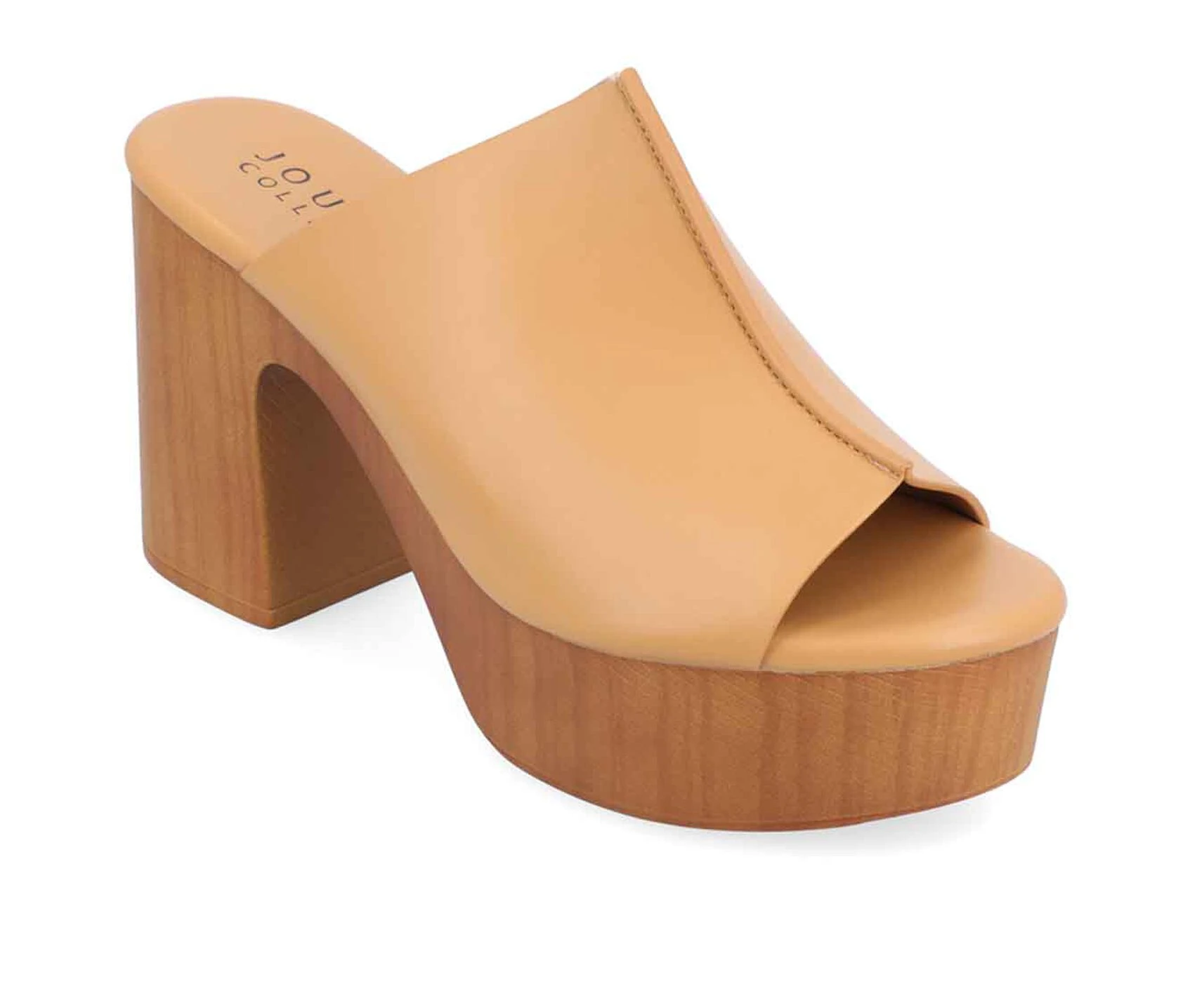 - The Lorenza faux wood platform sandals from Journee Collection are the perfect shoe to take you from work to a nice evening out to dinner with their open round toe. Having been made from luxe vegan leather and center seam detail, it will make them a simple yet classy sandal, giving you the perfect combination of not overdressed but not underdressed. As a bonus, their 4 mm Tru Comfort Foam™ insole, slip-on closure, and clog design will make them one of the most comfortable pairs of shoes that you will ever wear.