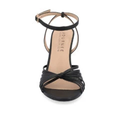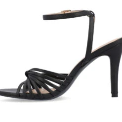 - The Vanita stiletto heel from Journee Collection will have you looking and feeling more confident than ever before. Their luxe vegan leather, buckled ankle strap, multi-strap design, and open round toe will give you the perfect style to take you anywhere without being too over or underdressed. To keep things simple, their padded footbed and buckle closure will keep your feet comfy for those long days.