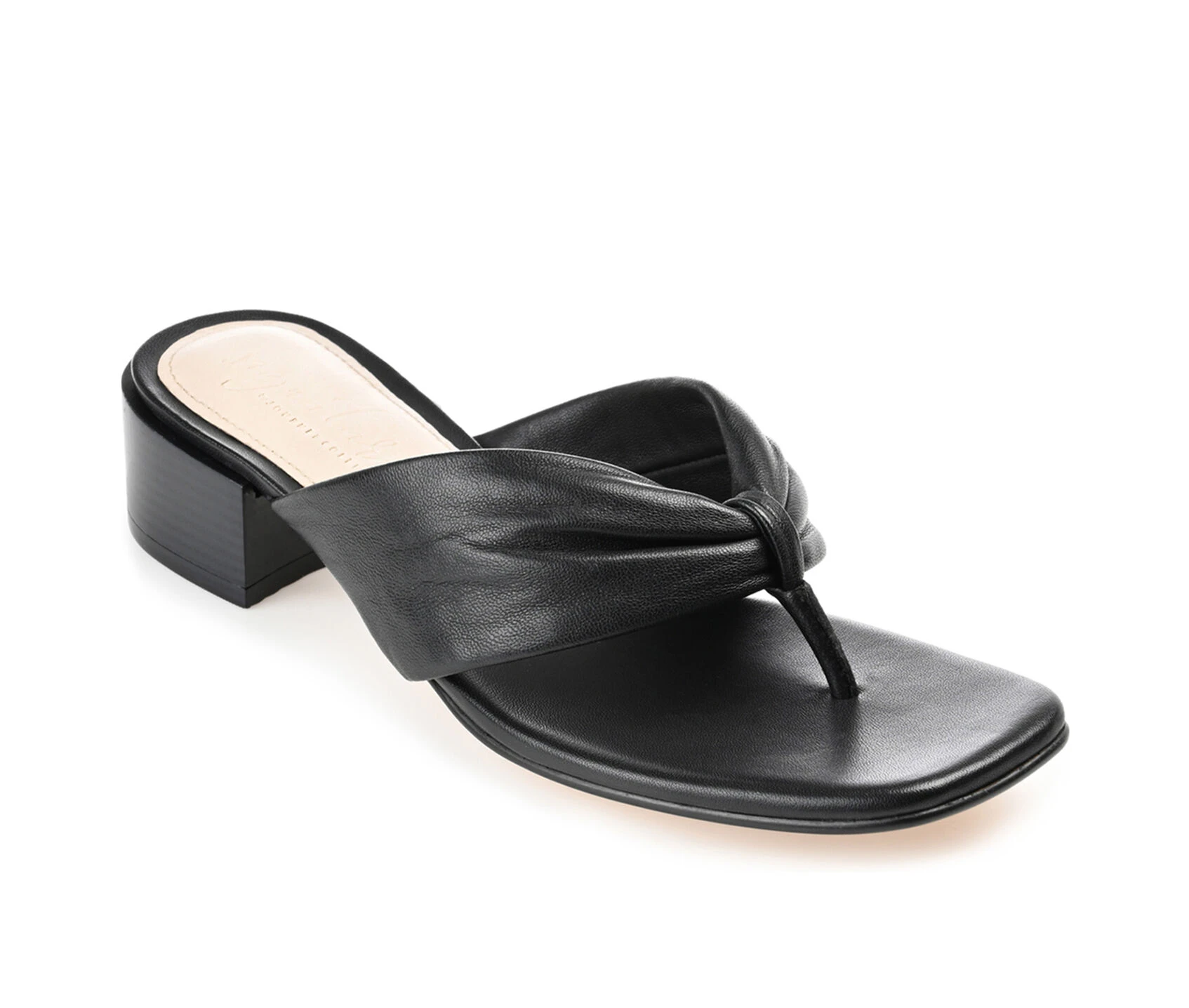- Sandals that can rise to any occasion, the Francine by Journee Signature. This genuine leather flip-flop features a retro block heel for an elevated look. A 4 mm Tru Comfort Foam™ footbed finishes this open-toe design for superior support as you walk.
