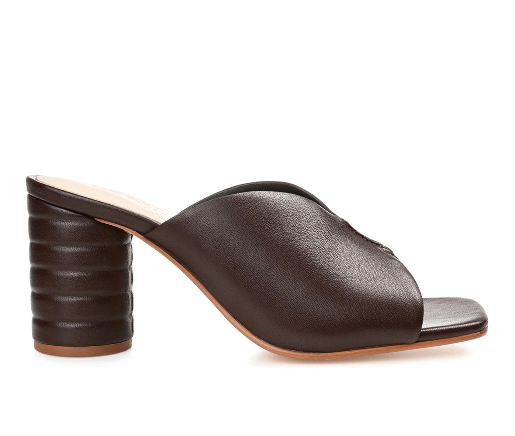 - Pulling together a chic look was never so easy. The Karah slides by Journee Signature feature soft genuine leather and a supportive 4 mm Tru Comfort Foam™ insole for the perfect fit. A deep-V cutout and the vamp and ribbed heel add a modern finish to the look.