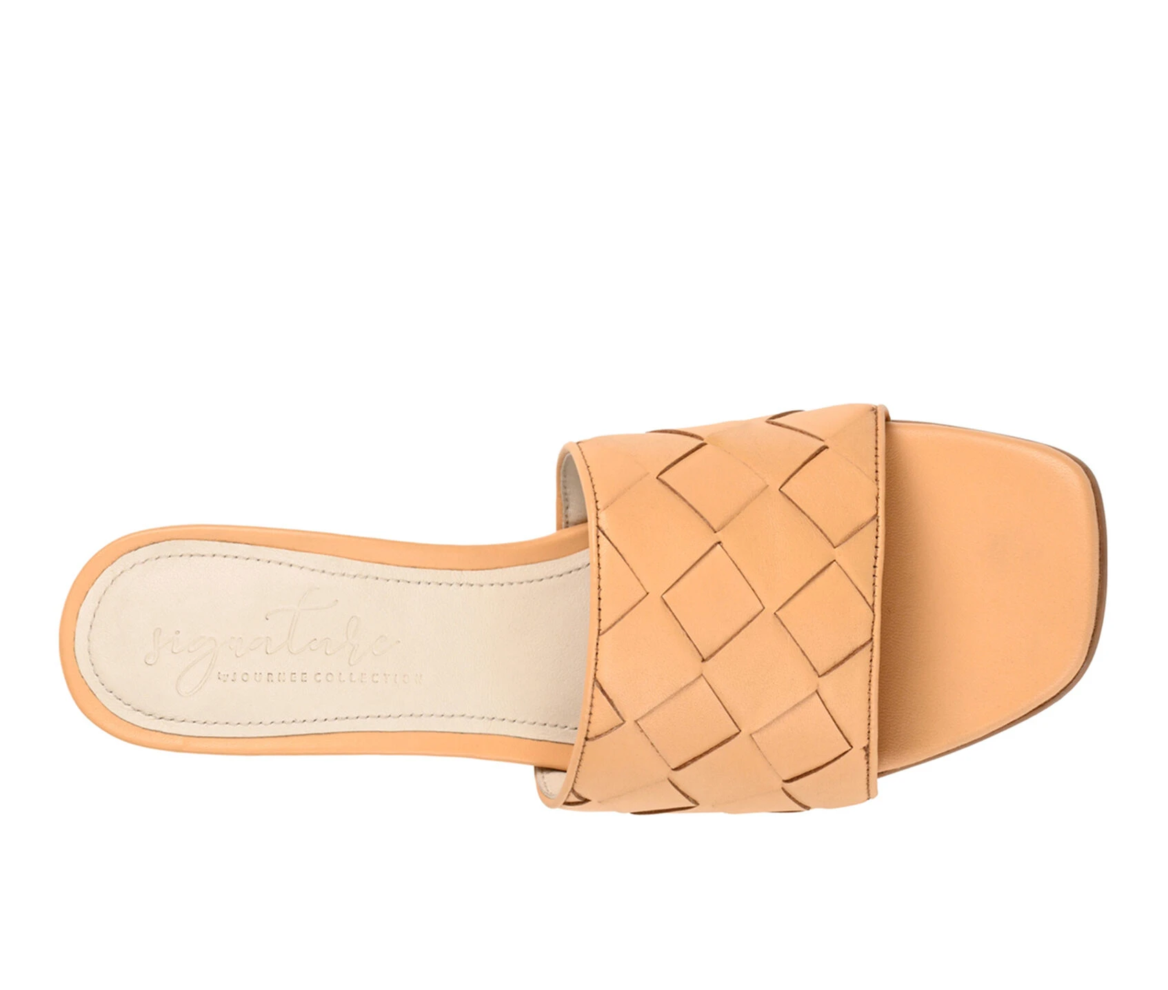 - Slide into the perfect look with the Kellee by Journee Signature. This dressy slide features premium genuine leather and a 4 mm Tru Comfort Foam™ insole for all-day comfort. Woven details at the vamp and a stacked block heel finish the look.