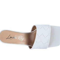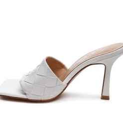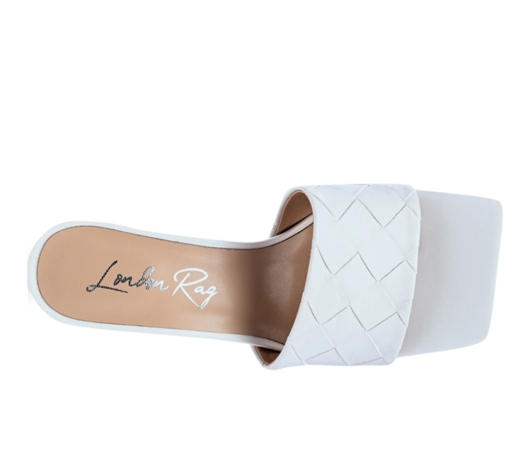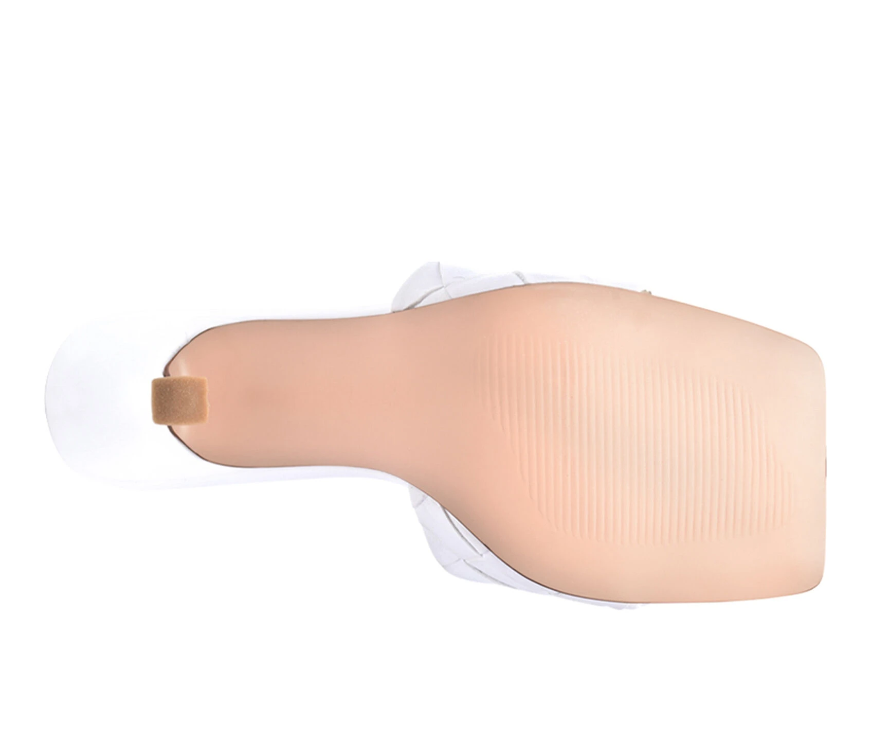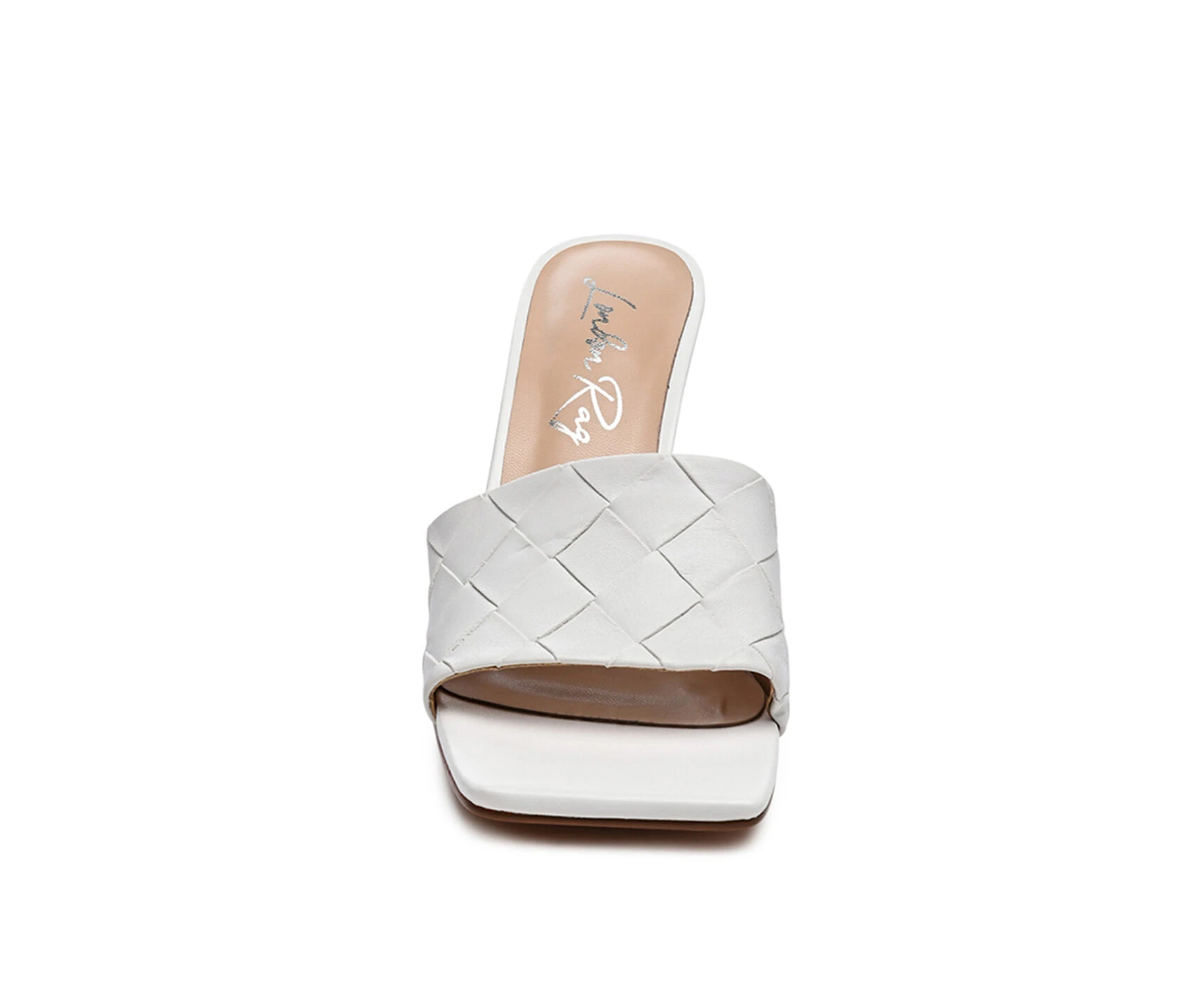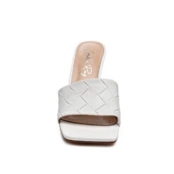 - Slip-On High Heeled Sandal in square toe interesting woven strap looks elegant on feet and comes in three color options to choose from.