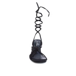 - Ruched Satin Lace Up sandal in thin block heels. The square toe tie up sandals have delicate satin straps with stitched ruched details and look elegant on feet. Come with light cushioning to absorb stress and keep feet strain free.