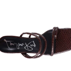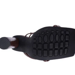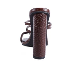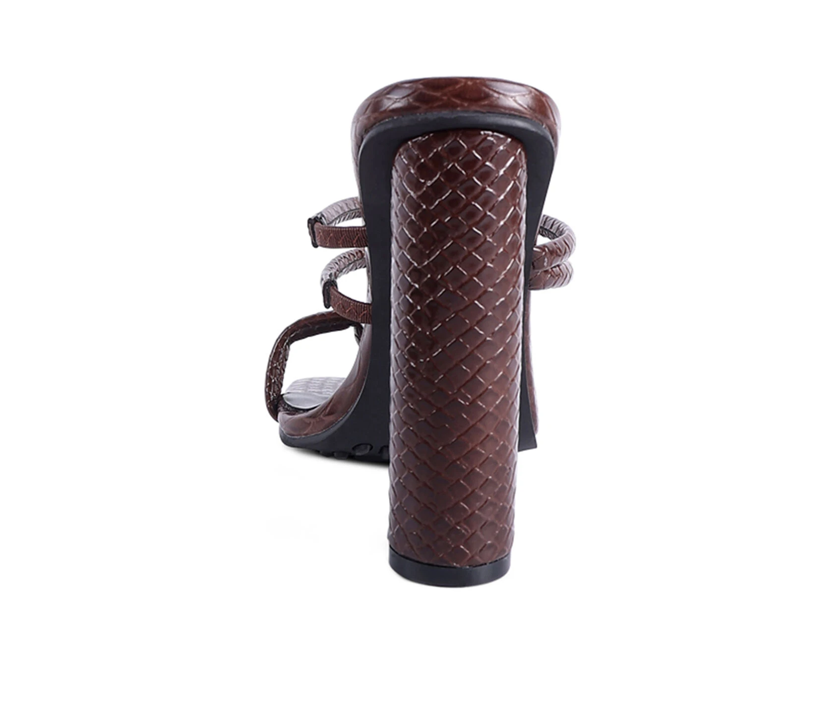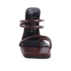 - With croc shiny patent PU, this uber stylish cylindrical high block heeled sliders are glam high. The straps have elastic details which stretch to fit and hold feet well. Has light cushioning to keep it soft. The toe ring detail on the front strap further adds to look and utility.
