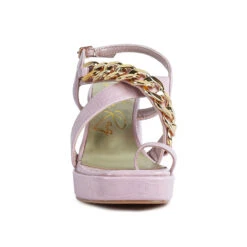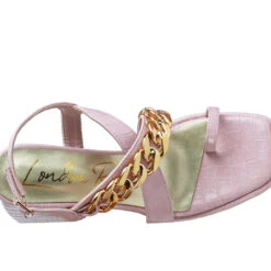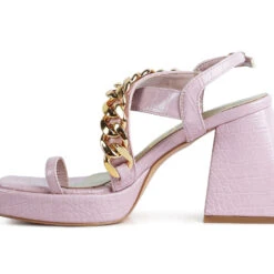 - Bold and chunky, the gold chain detail is an accentuating detail and enhances the basic block heel sandal.