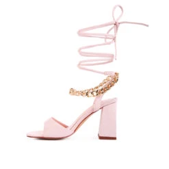 - The block heel sandals have a tie-up detail that is sexy and sleek, the gold chain detail adds a fun aesthetic element. The block heels and cushion padded innersole makes the sandals comfortable to wear.
