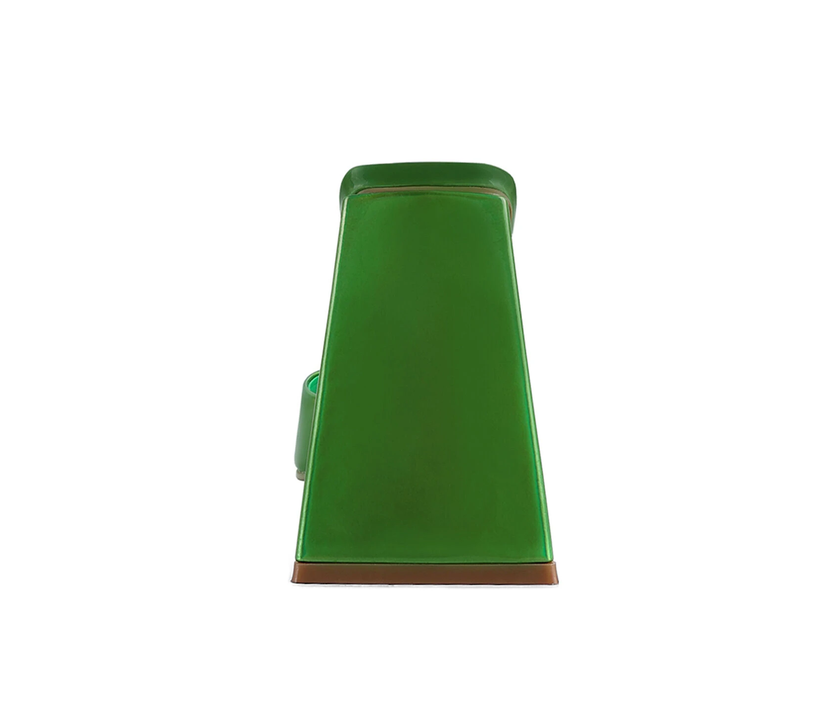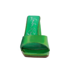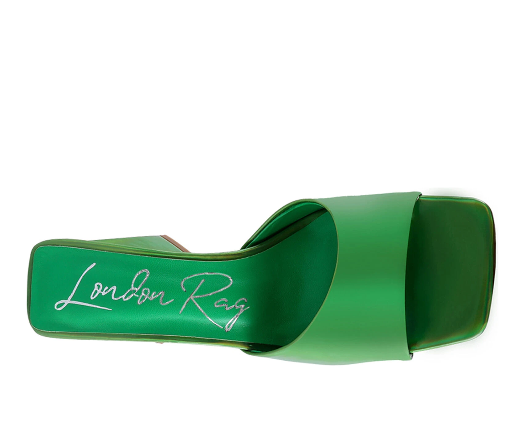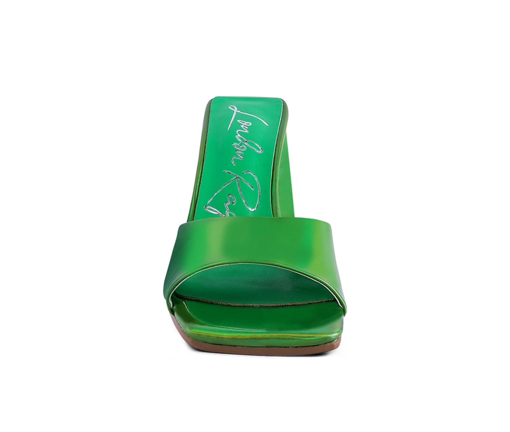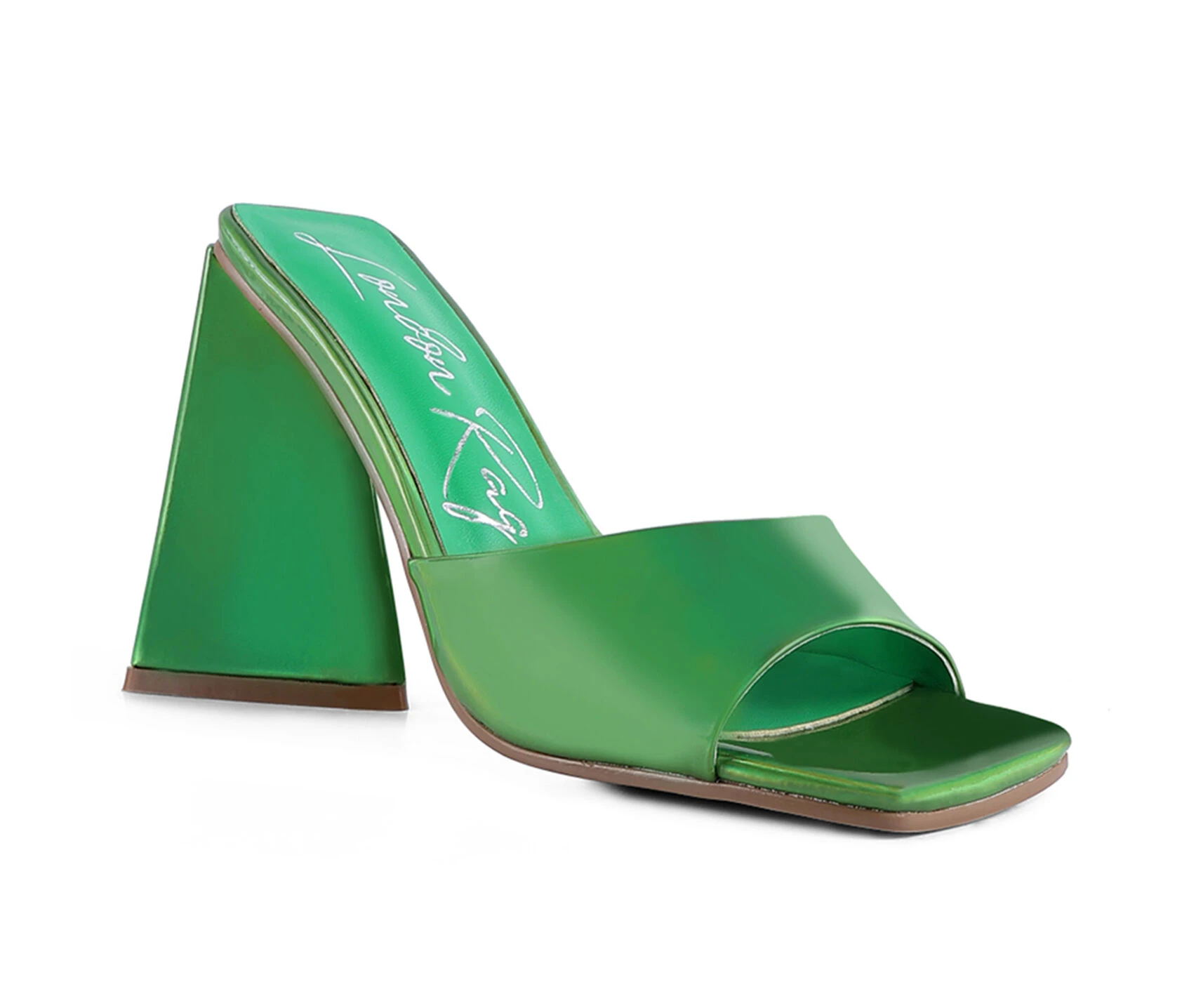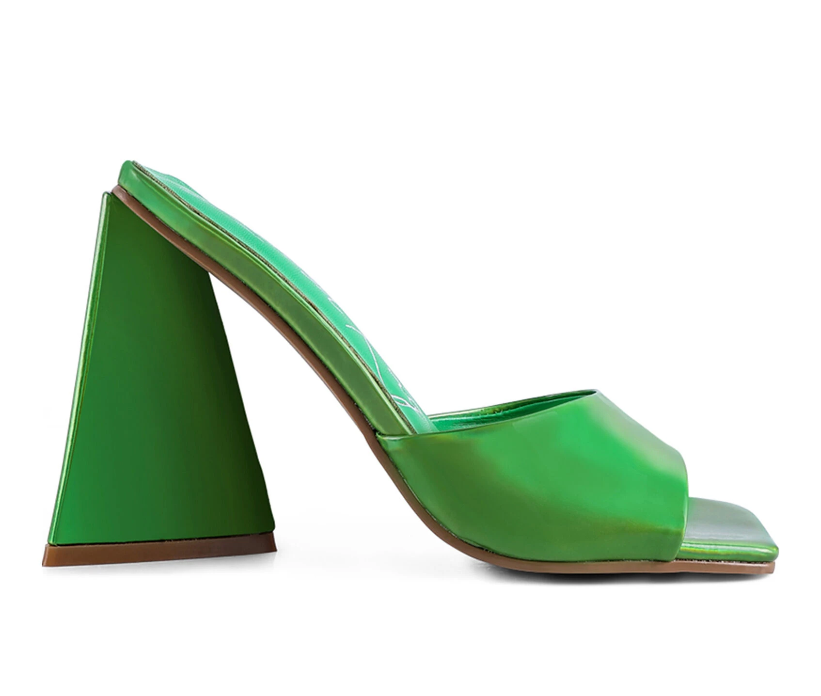 - Shine high in metallics and statement PU these block slip on are a show-stopper. The high block heeled slider sandals can be paired with any dress to make your look glam.
