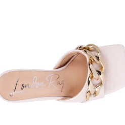 - Mid Heel Sliders with quilted detail and big metallic chain decoration on straps is a trendy design and looks gorgeous on feet. Comes with insole cushioning which absorbs strain.
