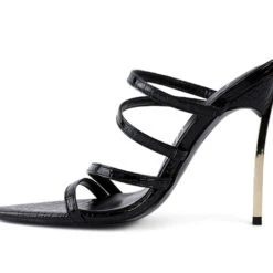 - Straight from the haute couture walkways, this pointed shoe in croc textured shiny pu has bling metallic high heel. Comes with light padding which cuts strain. The upper strap has elasticated detail, adding help to all feet sizes.
