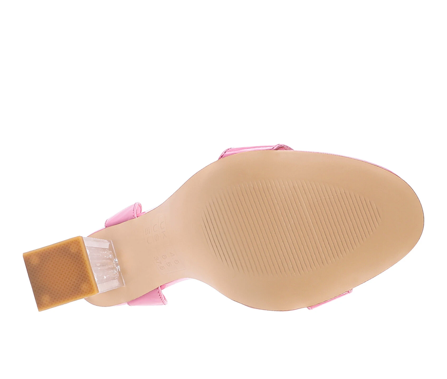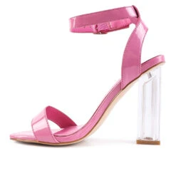 - Classy and Chunky, these clear chunky high-heeled sandals have an ankle strap and are chic in every way. The cushion padding in the innersole gives comfort and cuts stress.