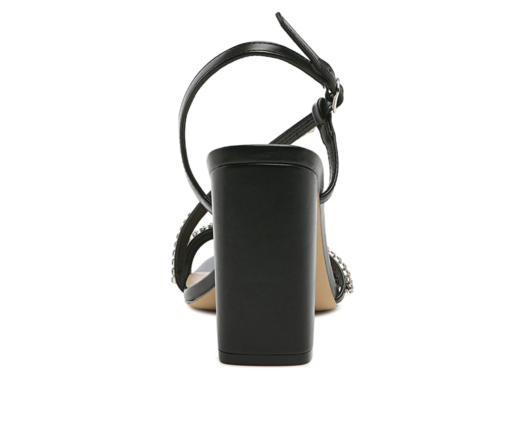 - Beautiful pair of trendy block heels with crystal-lined thin straps looks elegant and stylish. Square toe block heels are just trending over and this pair is an absolute must-have! Pair it with all your casuals and make it look upbeat.