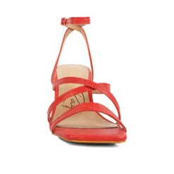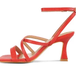- Get a dashing look with our Open Square Toe Spool Heel Sandals. These women sandals come with a pin buckle fastening detail for easy access and an emboss texture detail, making you look super glam. These spool heel sandals can be paired with a dress or tights or your favourite denims, and make you dazzle with just one look. A lightly padded insole keeps your feet happy.