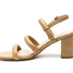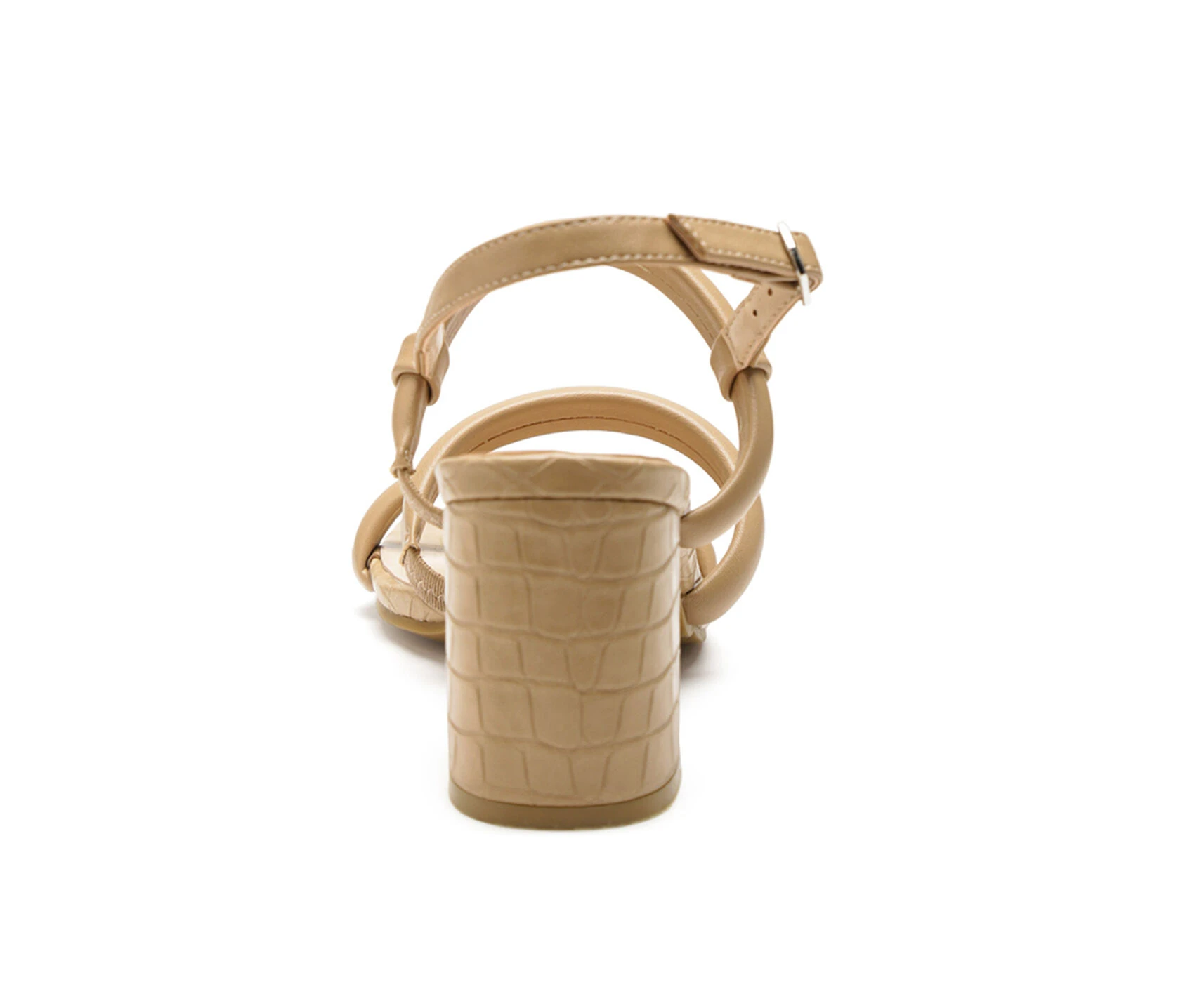 - Pair of square toe block heeled slingback sandals. Made in Croc textured faux leather and has tube straps. Looks elegant and offers support to the feet.
