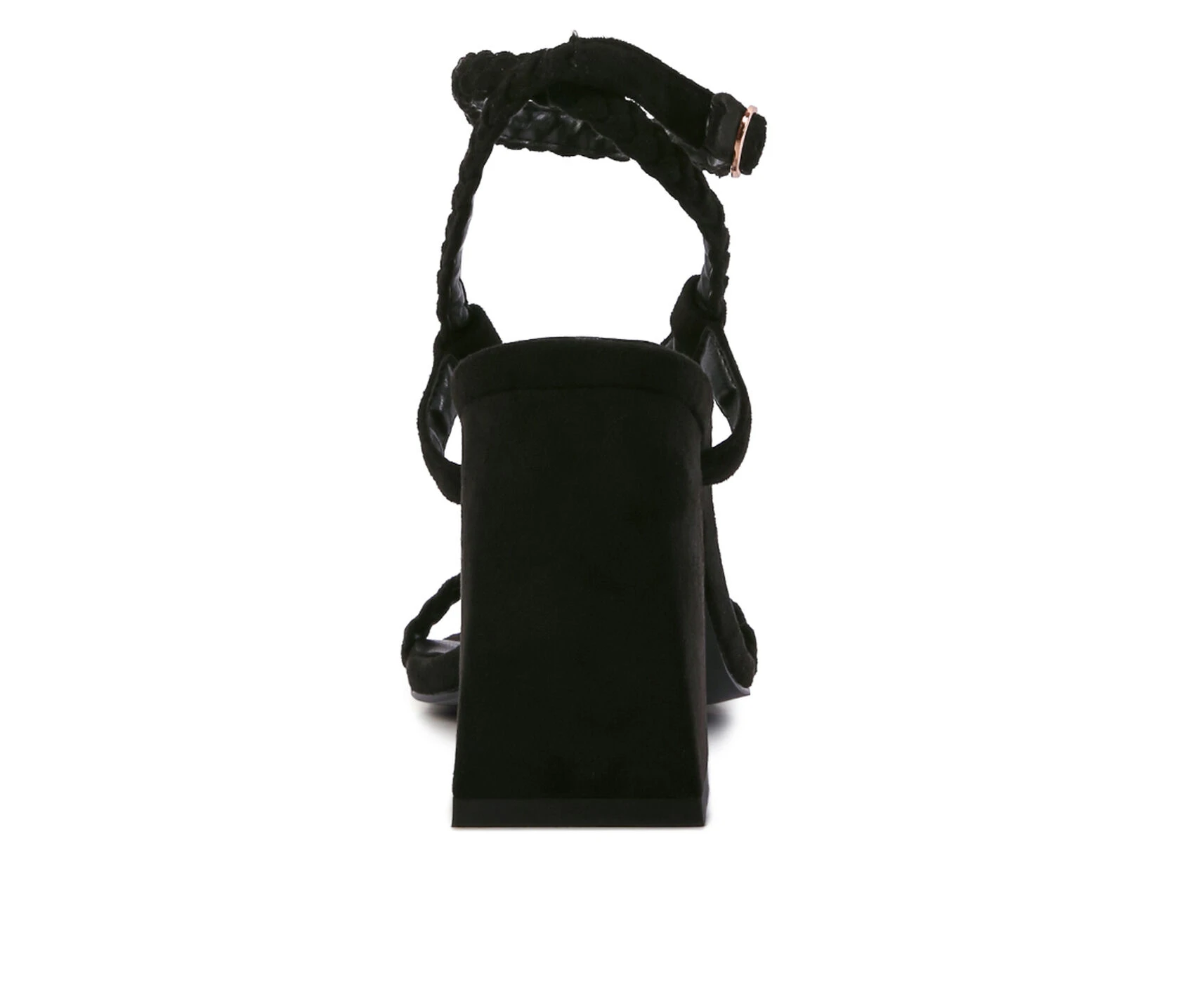 - All the spring, summer vibes in this. The braided design is enhanced by the microfiber material and looks fun. It has secured pin buckle fastening along the ankle strap. Softly cushioned insole cuts stress.