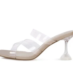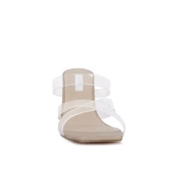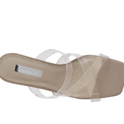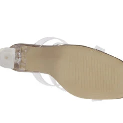 - Mid heel casual party sandals with lightly padded insole has clear straps and heel. The shoe looks beautiful on feet and has a comfortable height.