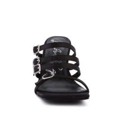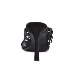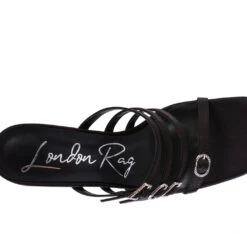 - The mid heel pointed sandal with diamante buckle straps are made from fine quality Pu in great finish. This quare cut toe sandal has light padded lining which cuts strain.