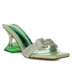 - The mid heel pointed sandal with diamante buckle straps are made from fine quality Pu in great finish. This quare cut toe sandal has light padded lining which cuts strain.