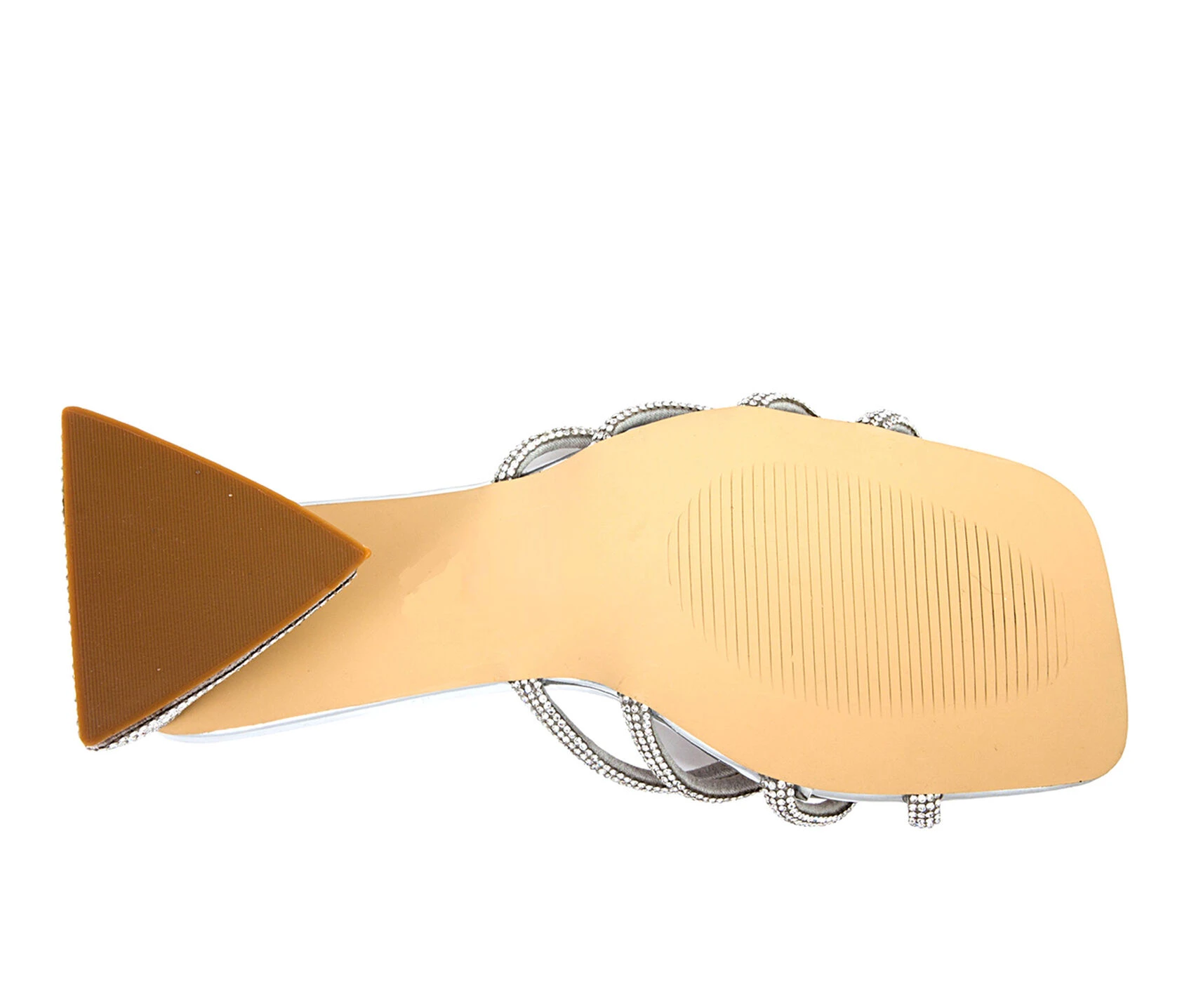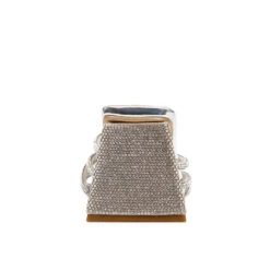 - 3″ triangular rhinestone wrapped block heel