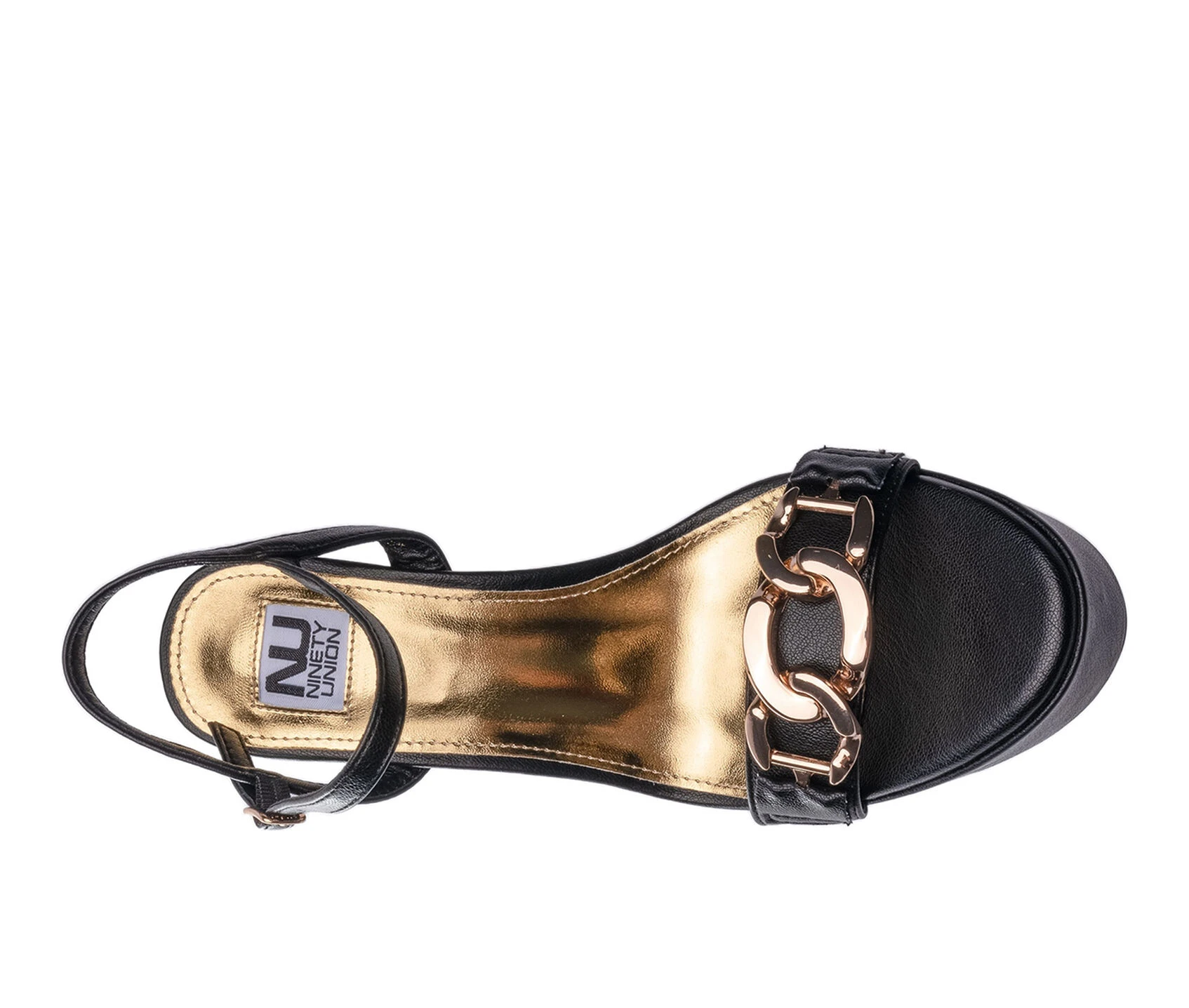 - Metallic chain link detail on toe strap