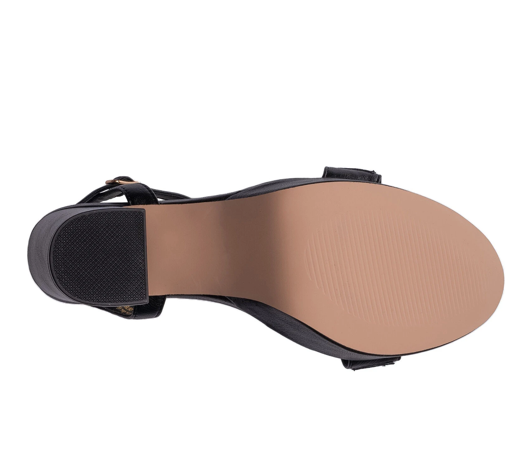 - Adjustable ankle buckle strap closure for secure fit