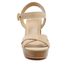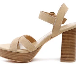 - Block Heeled Sandals in Classic Cut and Design – Handcrafted to perfection, settles along feet curve like custom made! feet. The wooden stacked heel adds to the aesthetics of the suede style.